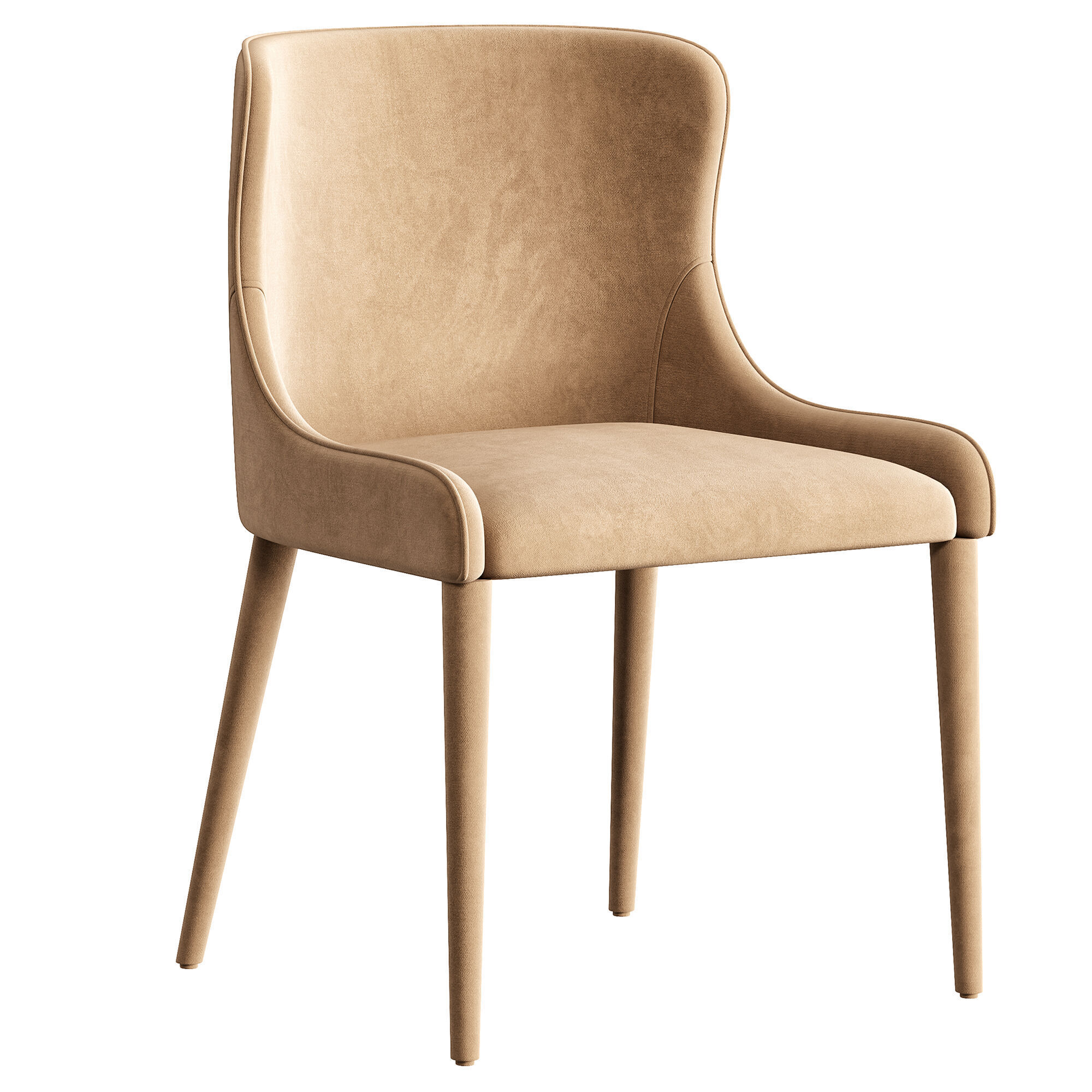 Современное мягкое кресло с элегантной формой и плавными линиями. Модель отличается высокой спинкой с мягкими подлокотниками и комфортным сиденьем, что делает кресло удобным для длительного использования. Обивка выполнена из текстиля с мягкой фактурой, а тонкие ножки придают мебели визуальную лёгкость и современный характер.