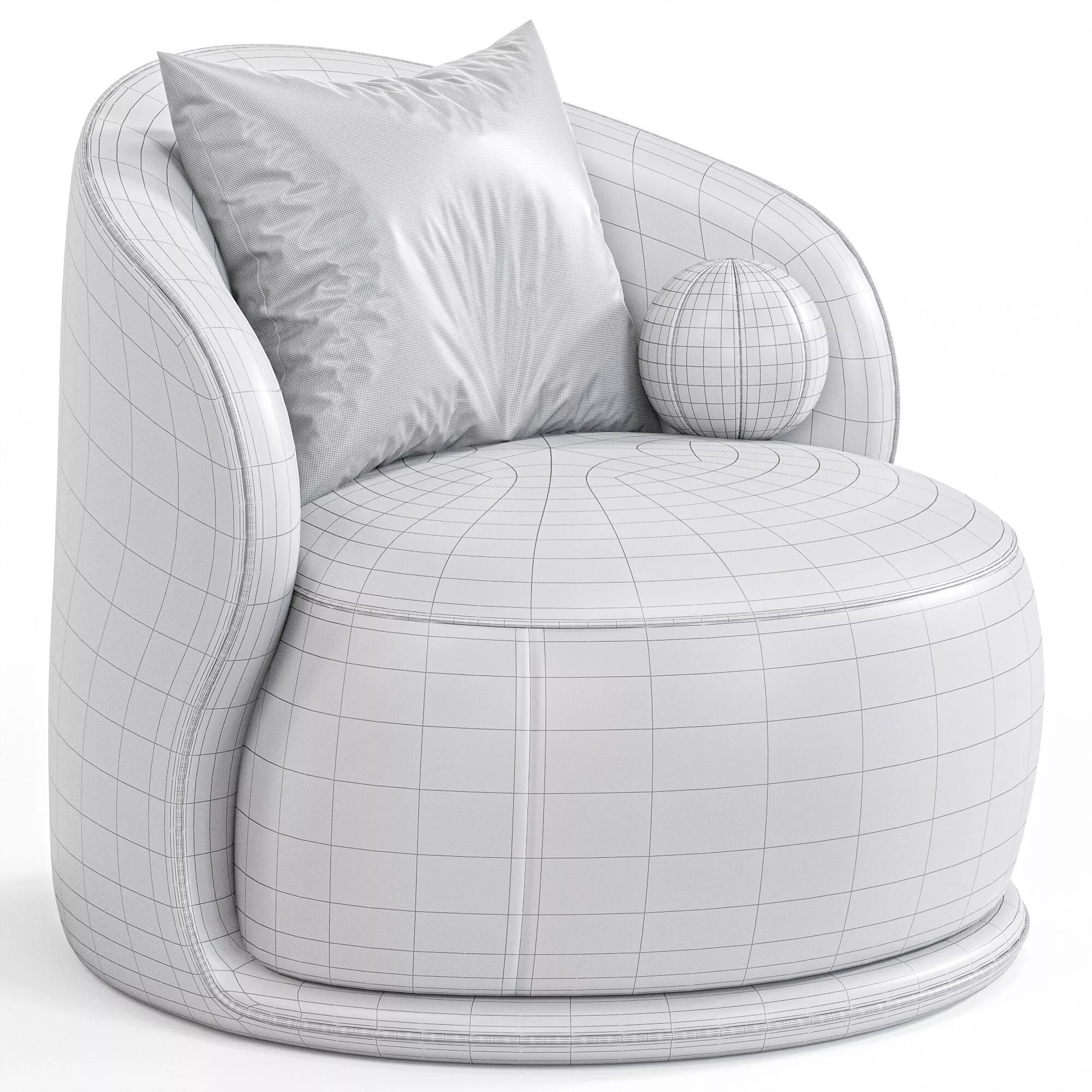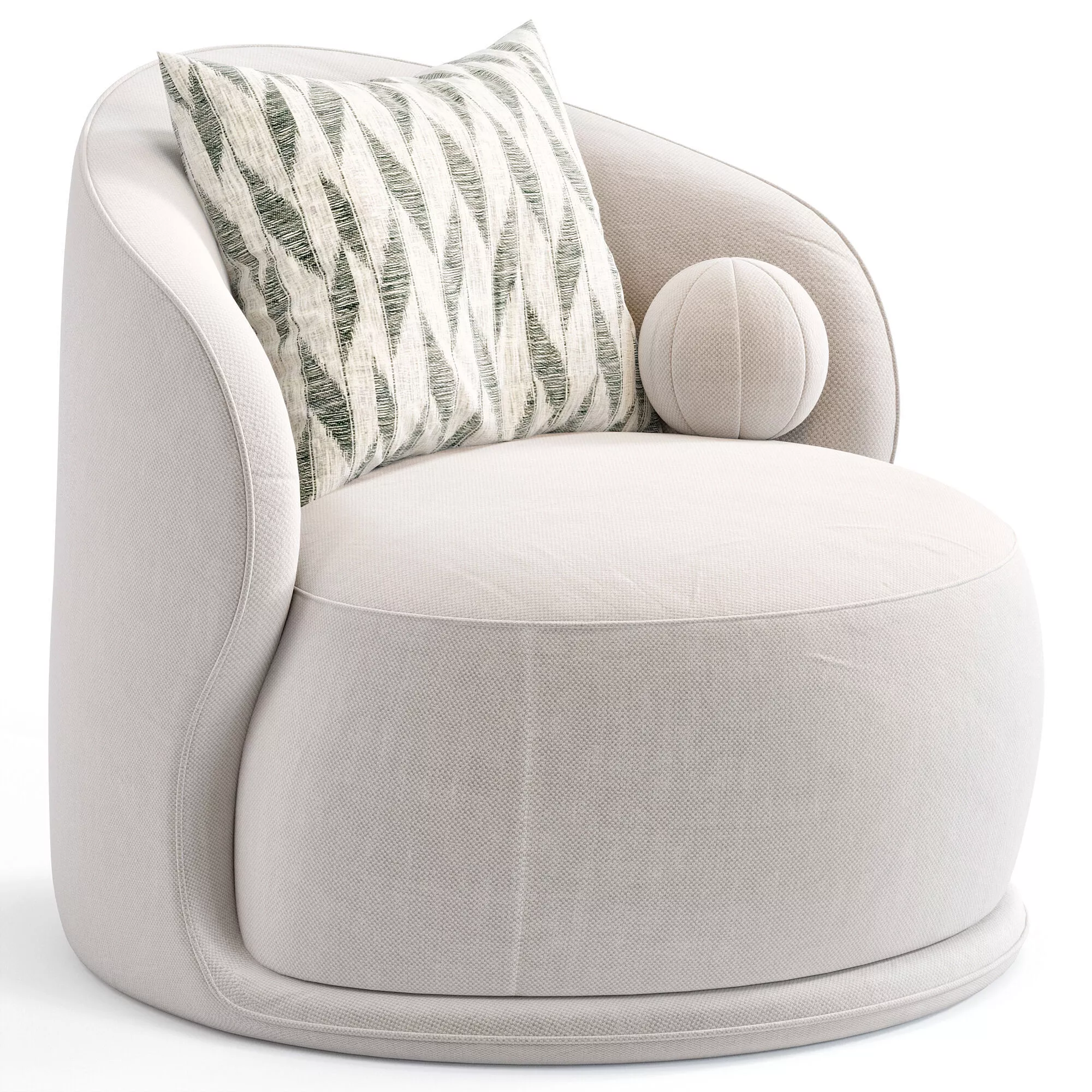 Мягкое дизайнерское кресло с округлой формой и выраженной текстурой ткани (bouclé). Отличается комфортной посадкой и актуальной минималистичной геометрией, хорошо подходит для современных и скандинавских интерьеров.