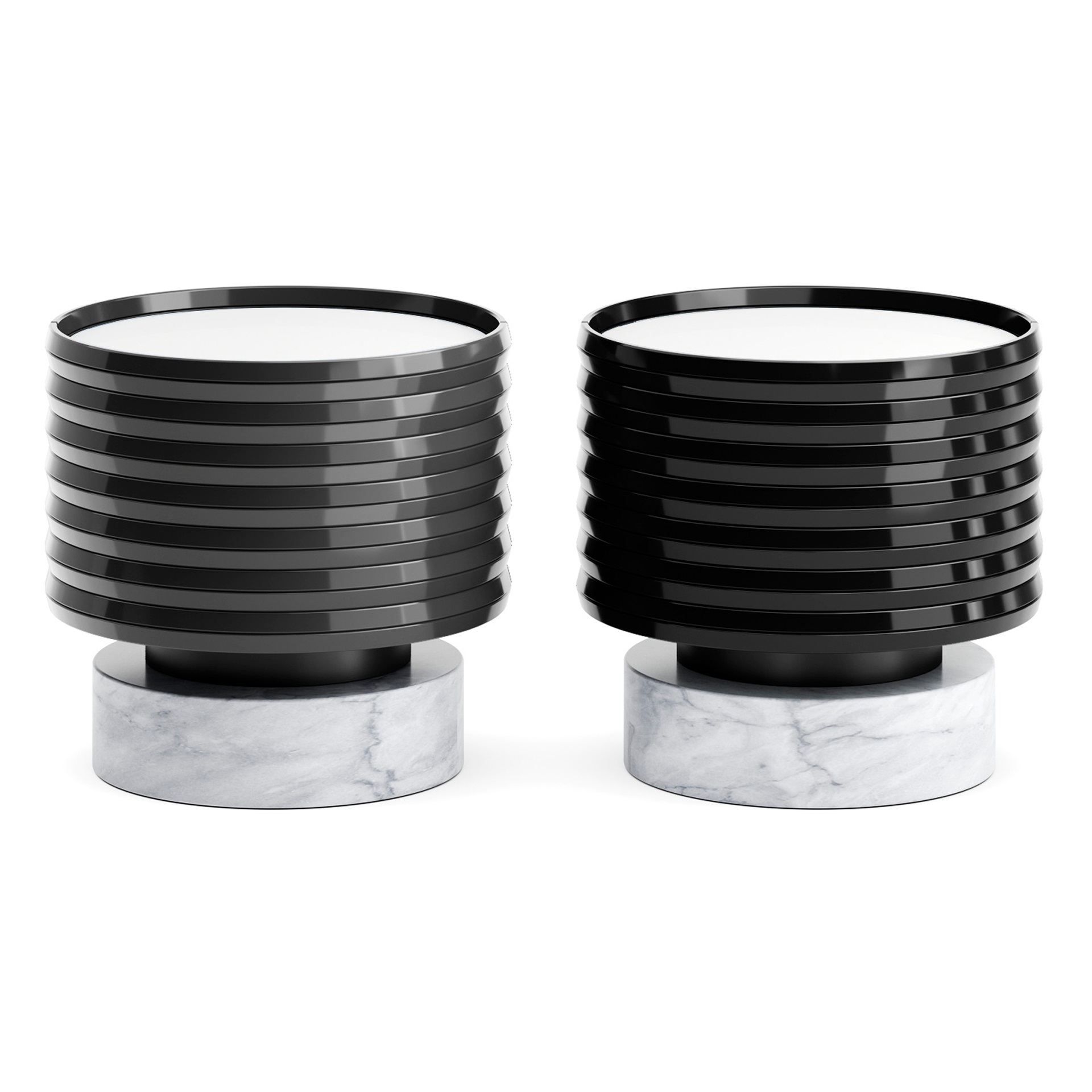 Корпус покрыт глянцевой или матовой эмалью по палитре RAL. Столешница доступна в керамике или пластике. Ящик оснащён скрытым премиальным механизмом с доводчиком для тихого и плавного хода. Внутри расположен вкладыш из натуральной кожи с декоративной строчкой и фирменным логотипом. Основание изготовлено из натурального мрамора.