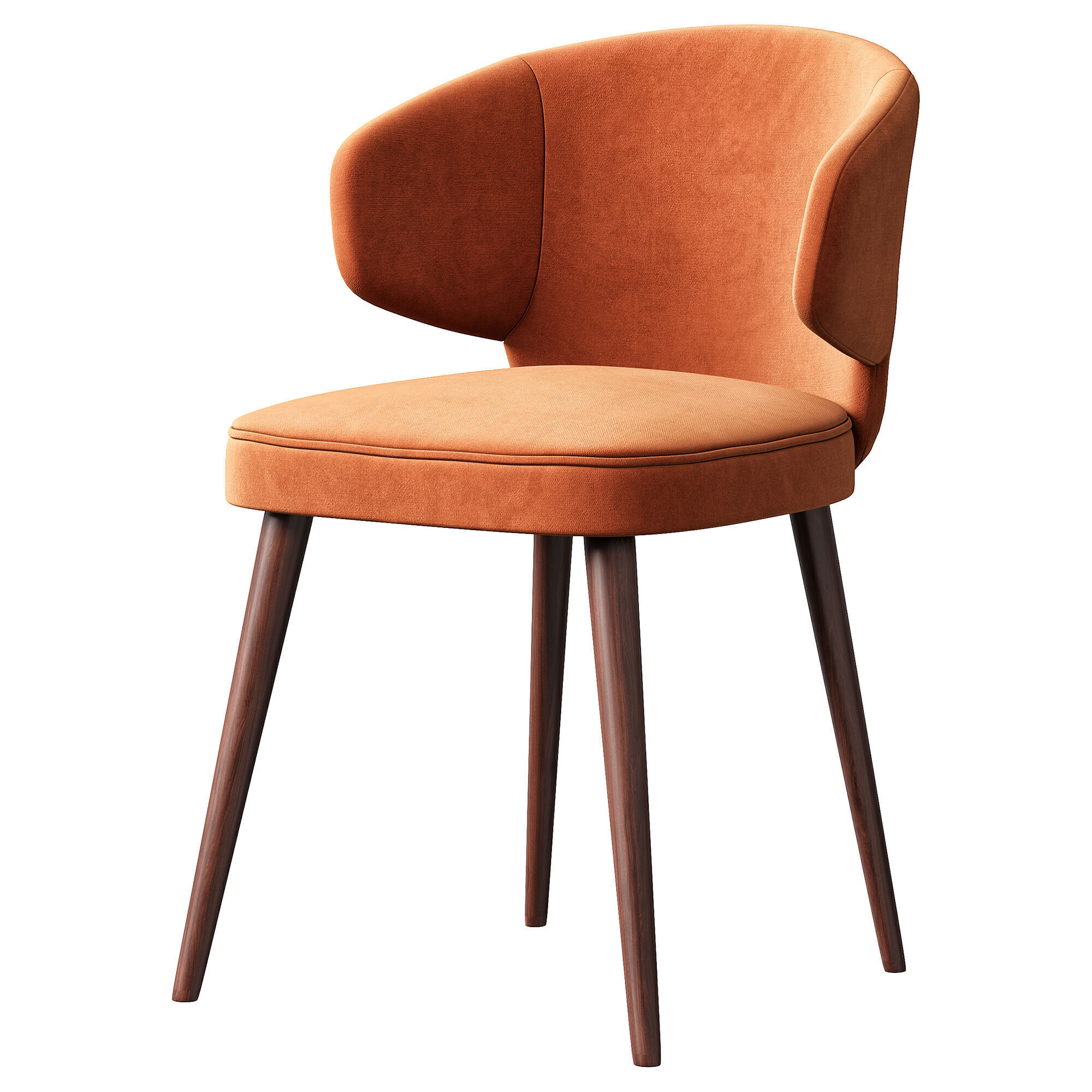 Современное дизайнерское кресло с мягкой обивкой и элегантной формой спинки. Модель сочетает компактное сиденье с плавно изогнутой спинкой, что делает кресло комфортным и визуально лёгким. Тонкие деревянные ножки добавляют мебели изящества и хорошо сочетаются с текстильной обивкой.