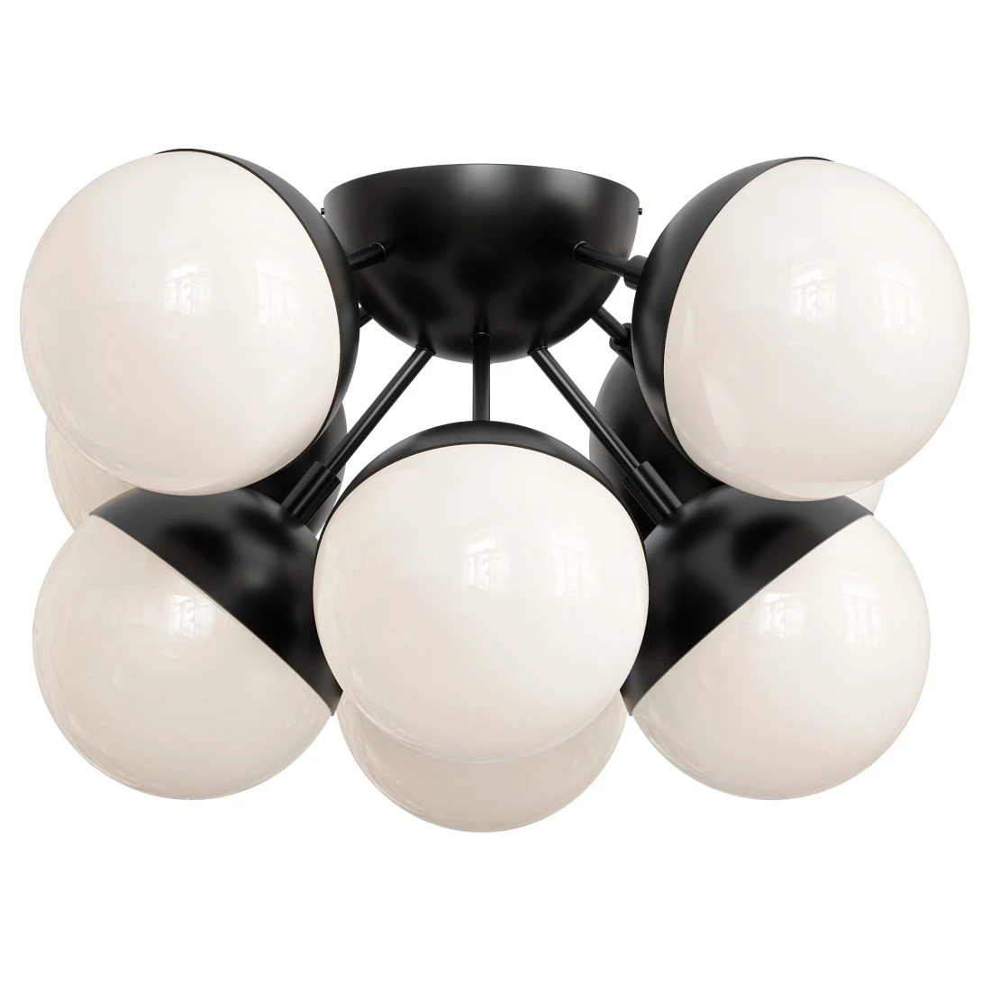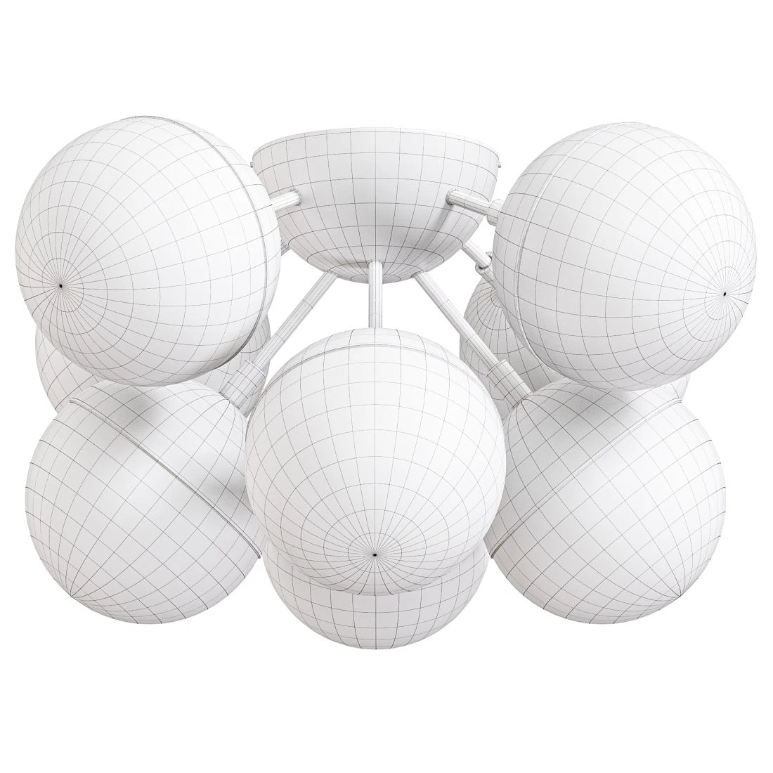 Потолочная люстра Ball 8 от Play Lighting — современная световая модель с выразительной геометрией и симметричной композицией. Конструкция построена вокруг центрального металлического основания, от которого расходятся восемь сферических плафонов.