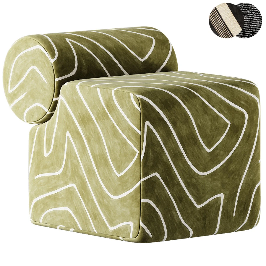 Esfera Ottoman — детализированная 3D-модель дизайнерского пуфа с выразительной скульптурной формой и мягкой обивкой. Компактный объём сочетается с плавными закруглениями и характерной цилиндрической спинкой, что делает объект акцентным элементом в современных и эклектичных интерьерах.