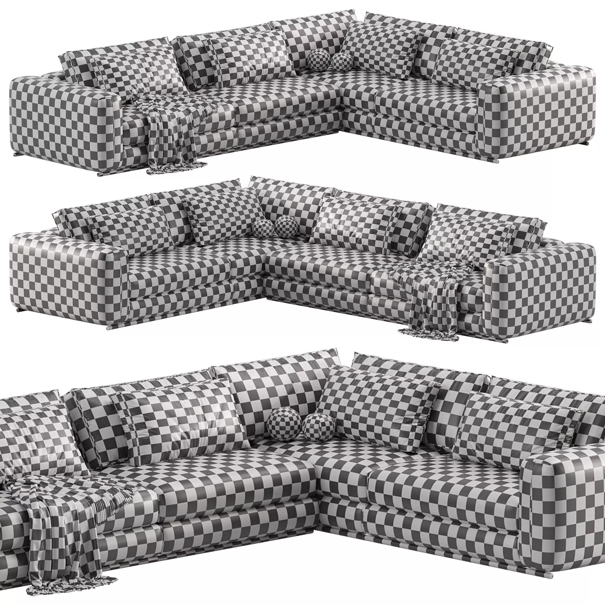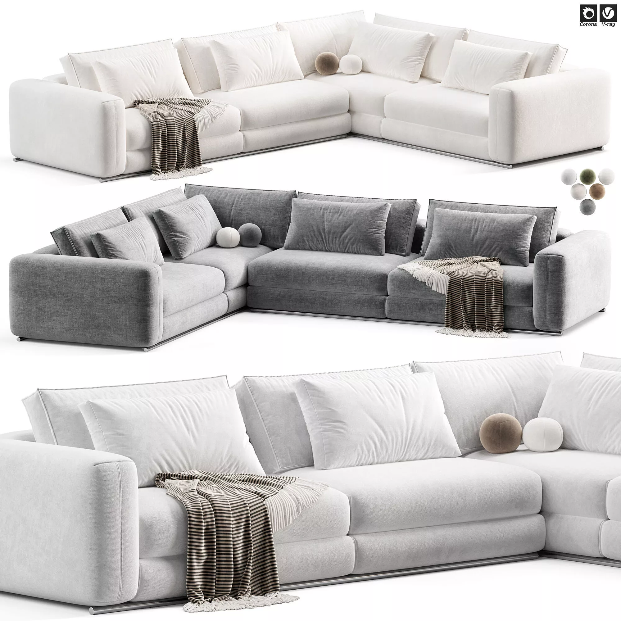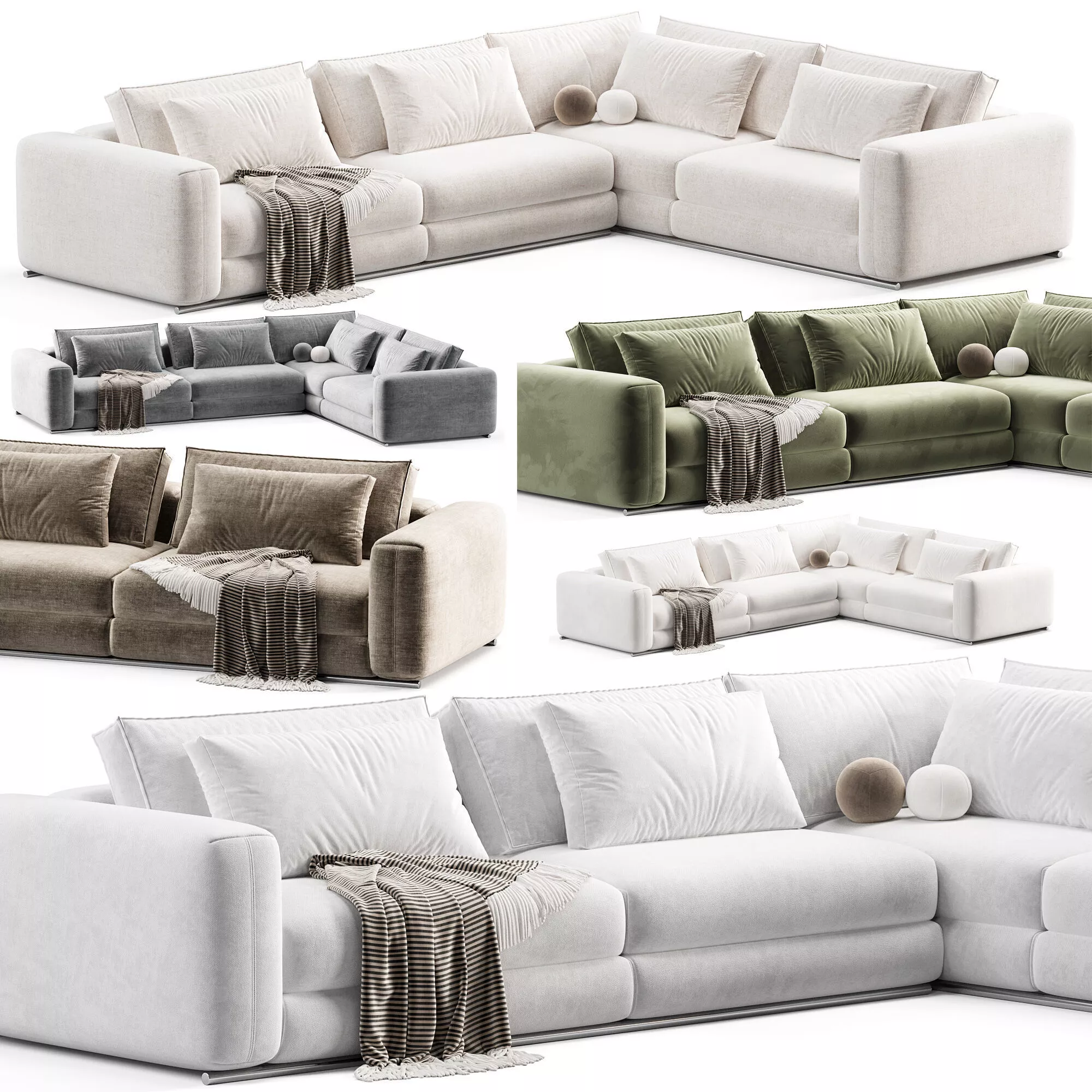 Модульный угловой диван в современном стиле с мягкой архитектурной формой и глубокой посадкой. Отличается массивными подлокотниками, объемными подушками и натуральной подачей текстиля.