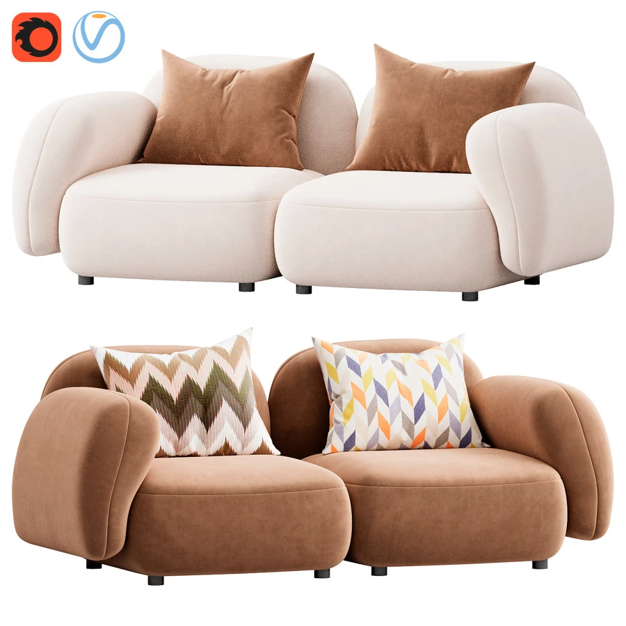 Модульный диван Sundae - это современное дизайнерское решение с мягкими округлыми формами и низкой посадкой. Модель выполнена с высоким качеством детализации: швы, подушки, текстура ткани.