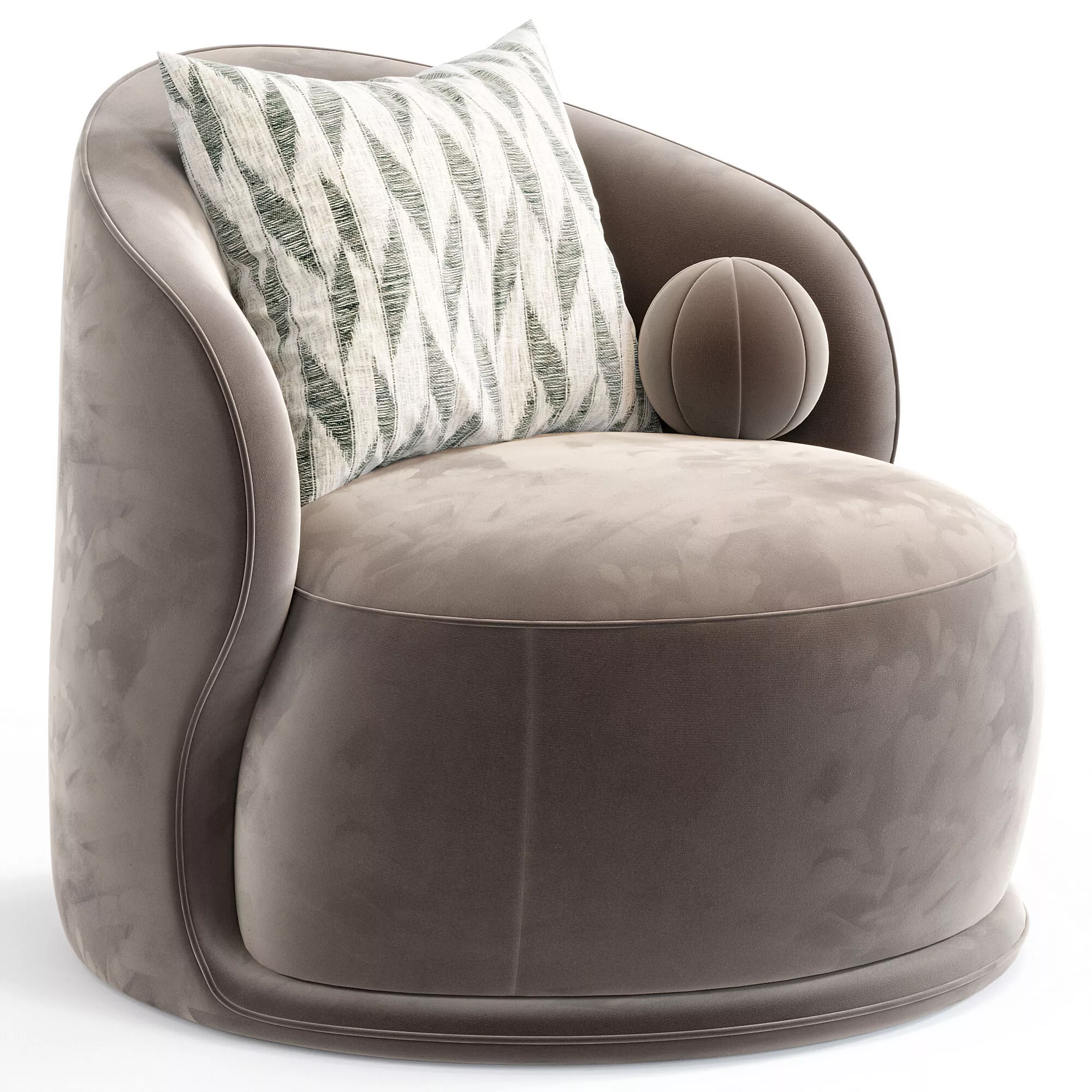 Мягкое дизайнерское кресло с округлой формой и выраженной текстурой ткани (bouclé). Отличается комфортной посадкой и актуальной минималистичной геометрией, хорошо подходит для современных и скандинавских интерьеров.