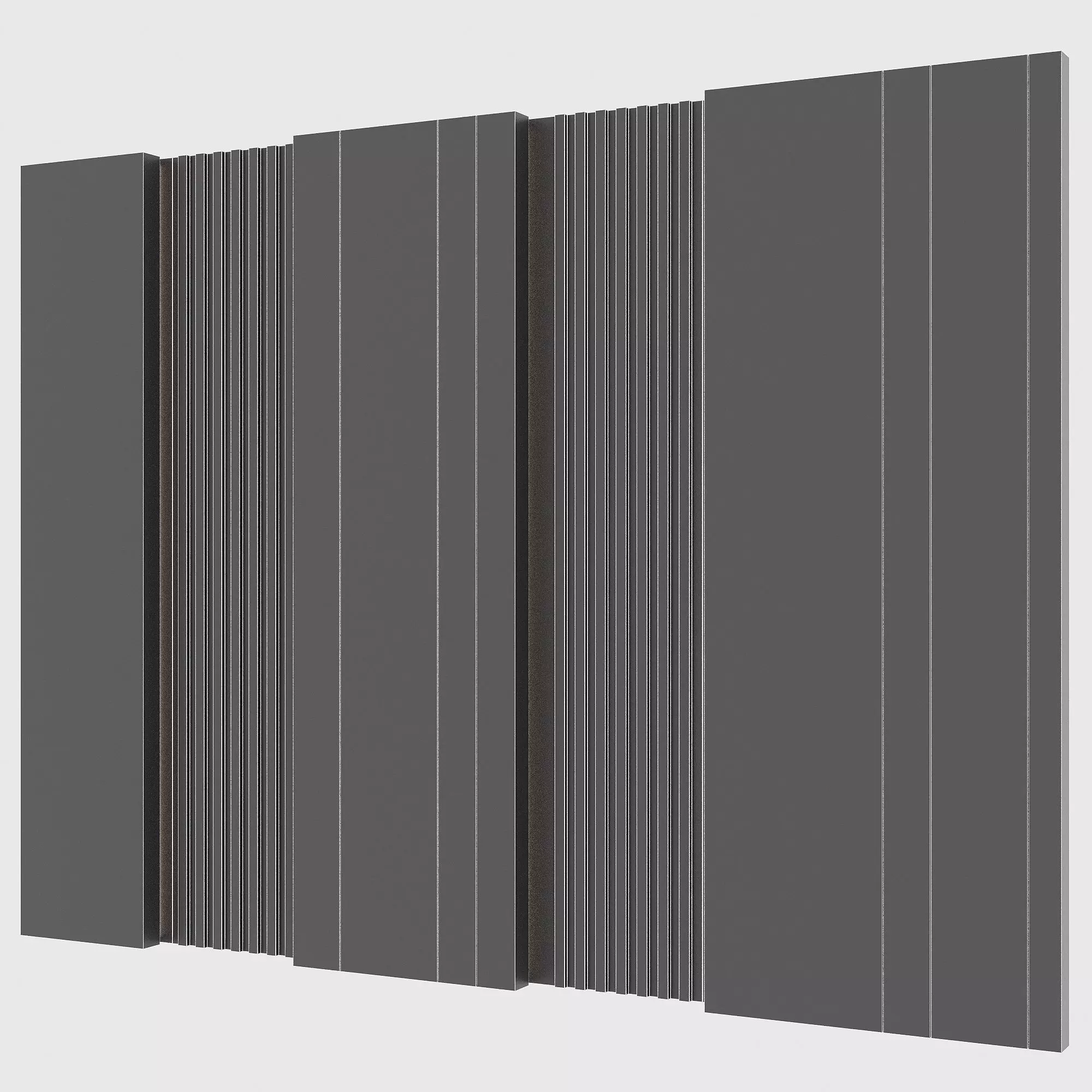 3D-модель декоративной стеновой панели Wall Panel 40, предназначенная для использования в архитектурных и интерьерных визуализациях. Панель выполнена в современном стиле с комбинацией гладких плоскостей и вертикального рельефа, что позволяет формировать выразительные акцентные стены без перегруженной геометрии.